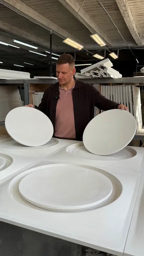 Производим своим транспортом. Наш автомобиль оборудован всем необходимым для бережной и безопасной транспортировки интерьерного и фасадного декора. Изделия укладываем на поролон, чтобы исключить повреждения.