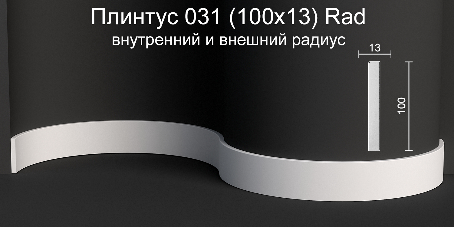 Плинтус напольный радиусный гипсовый ПН 031 Rad