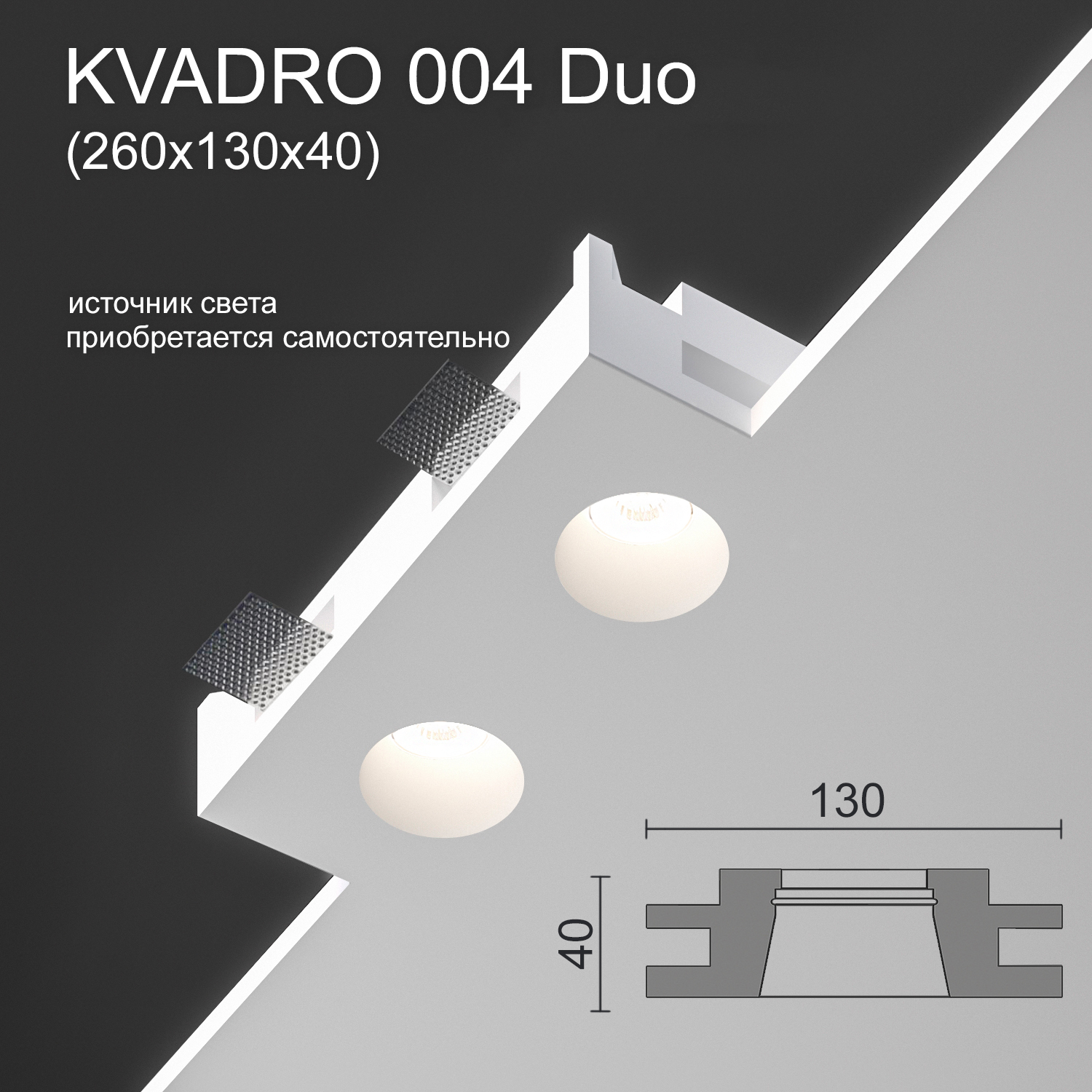 Светильник встраиваемый точечный гипсовый KVADRO 004 Duo