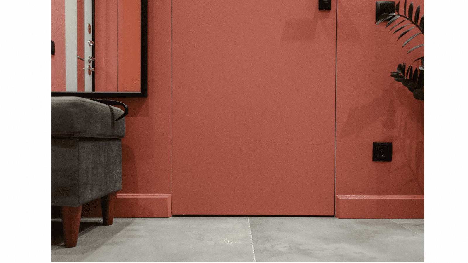 Самая "проблемная" часть плинтусов, чаще всего страдающая от повреждений - это углы. Поэтому их оформили наружными углами из фибробетона - это очень прочный материал, на котором не остаются вмятины от ударов.