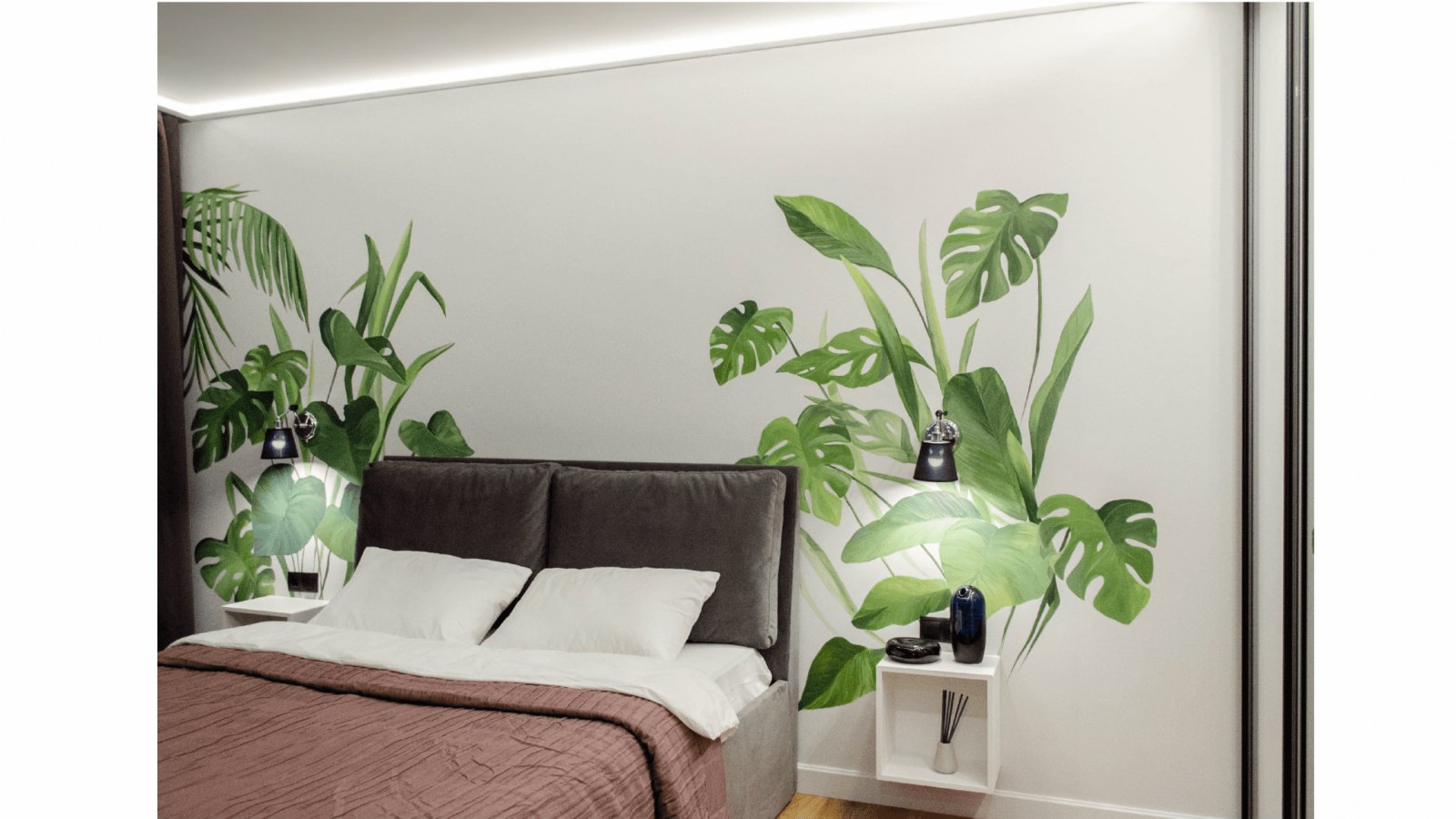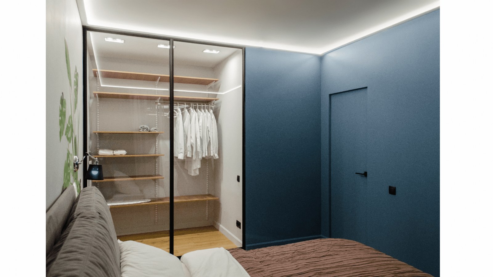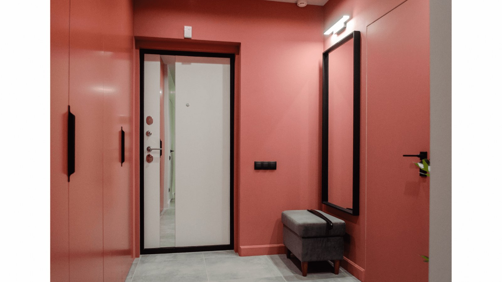 Квартира предназначена для сдачи в аренду, поэтому дизайнер выбрала практичные материалы для отделки - гипсовые плинтусы. В прихожей и спальне их выкрасили в цвет стен.